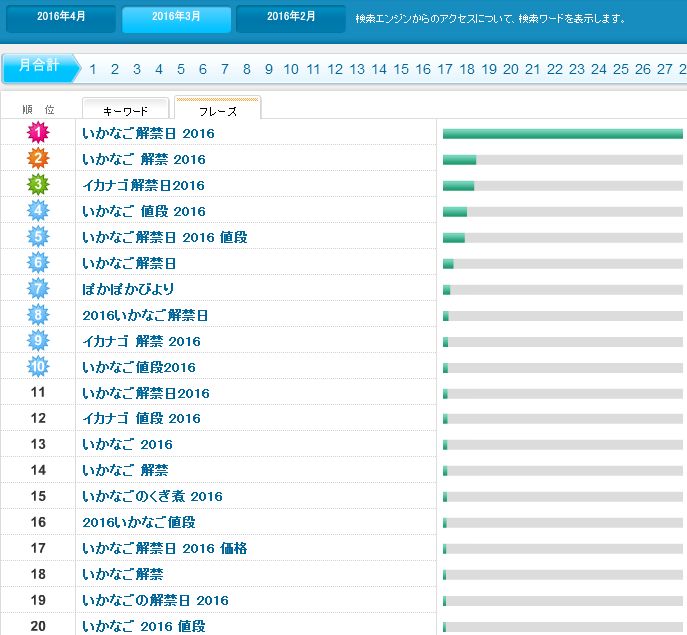 この2月と、3月と、検索エンジンからの導入キーワードを見ると、いかなご祭りでした。