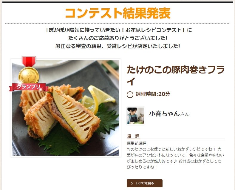 こちらのレシピは、こちらのコンテストにて受賞いたしました。 発表ページは